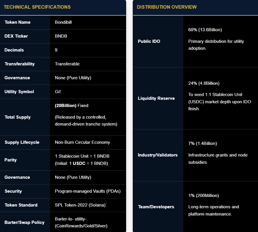- Creation and Vaulting (Initial State): Begins with a fixed total supply of 20billion Bondibills